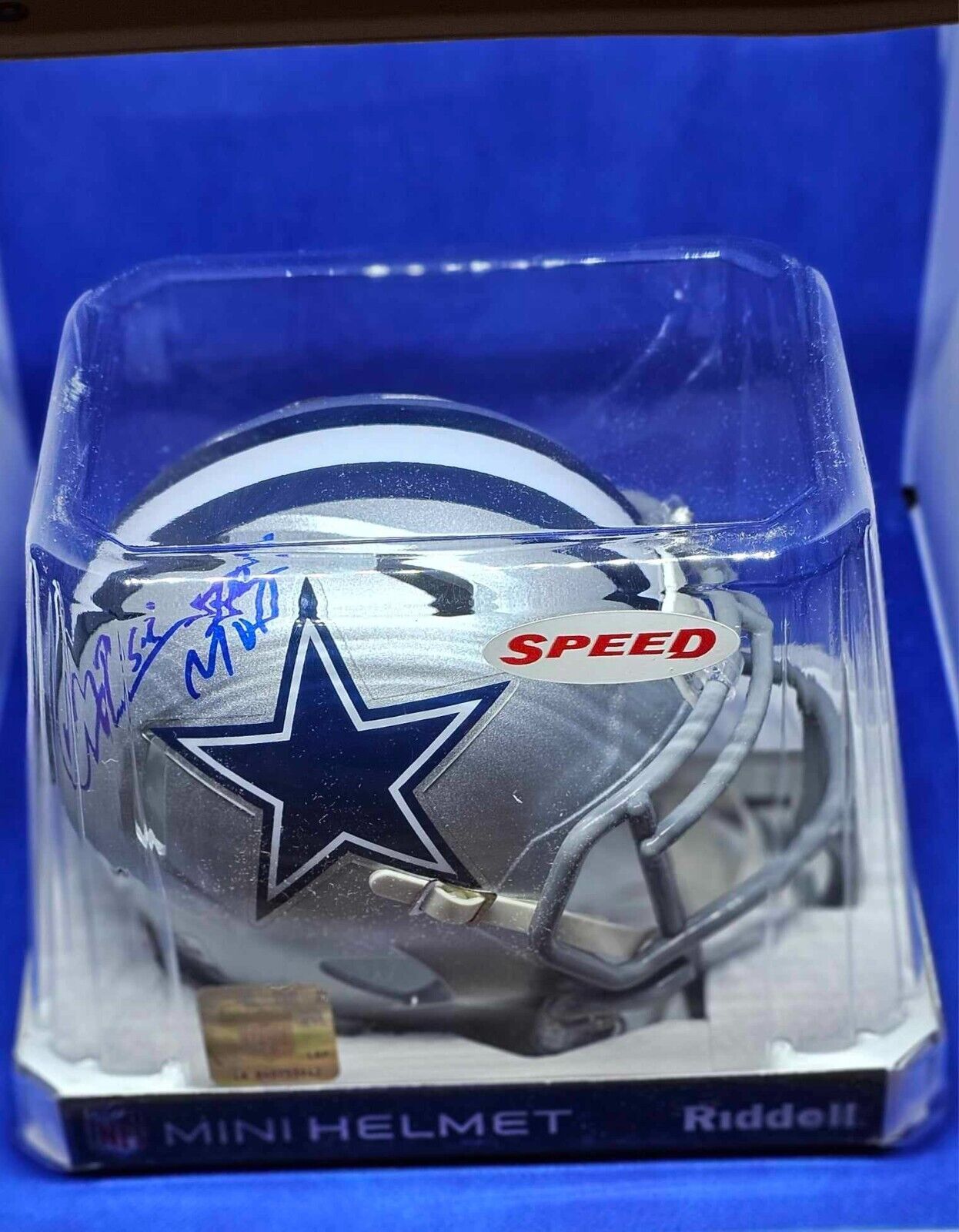 The Larry Brown signed Dallas Cowboys mini helmet is a prized collector's item featuring the autograph of the accomplished cornerback. This mini helmet, a Riddell Speed replica, represents Brown's contributions to the Dallas Cowboys and bears his signature. Notably, the helmet includes the inscription "Super Bowl MVP," commemorating Brown's standout performance and recognition as the Most Valuable Player in Super Bowl XXX. This autographed mini helmet serves as a compact and impactful tribute to Larry Brown's significant role in the Cowboys' success and his remarkable achievement as a Super Bowl MVP.